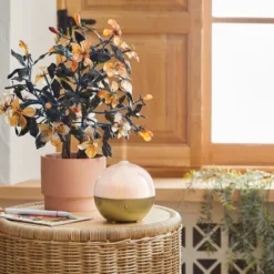 Bring a touch of whimsy to your interior while infusing your space with the scents of your favorite aromatic oils with the Iridescent Oil Diffuser from Opalhouse™. Featuring a round shape with a white iridescent top and a gold plastic base, this essential oil diffuser adds eye-catching shine to your home, and the internal 100-milliliter chamber holds plenty of your favorite oil for hours of enjoyment. The small size is ideal for placement on your desk, shelf, side table and more, while the USB-powered design makes for versatile use.