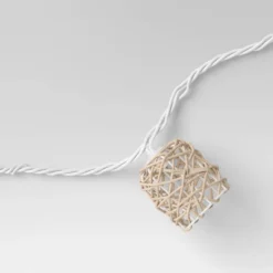 Bring boho vibes to your outdoor oasis with these 10-Count Incandescent Mini Lights with Wrapped Rattan Hoods from Opalhouse™. Designed with 10 mini incandescent bulbs on a white wire, these patio string lights make a perfect addition to your deck or other outdoor entertaining space to help you keep enjoying it into the evening. Each bulb on this string of outdoor decorative lights features a wrapped rattan hood for a warm and textured look that pairs perfectly with potted plants and colorful patio cushions to complete your entertaining space.