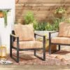 - All-weather wicker and metal patio chair maintains its look through the seasons